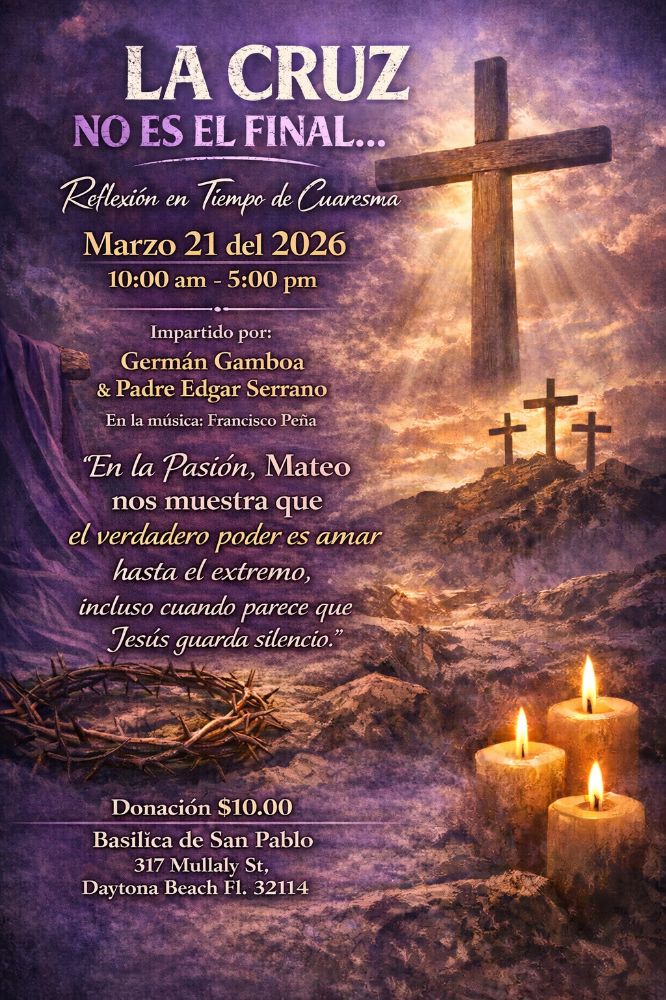 No se pierda nuestro Retiro Misionero de Cuaresma en español el 21 de marzo. Llame a Jeffrey en la oficina de la basílica para más información.