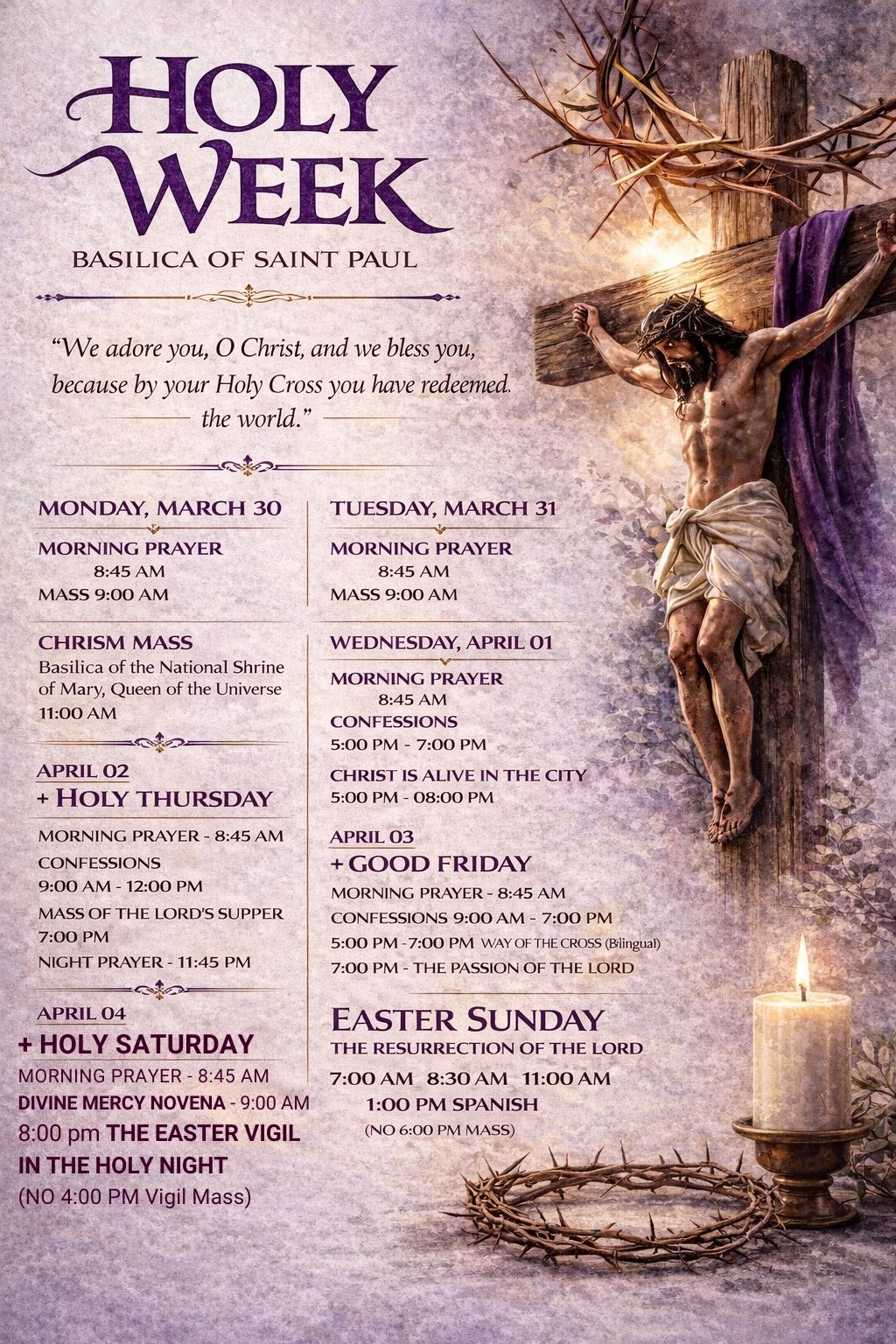 See the Lent/Holy Week brochure for details
