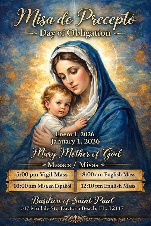 Thursday, January 1, 2026 is a Holy Day of Obligation to honor Mary, the Mother of God.